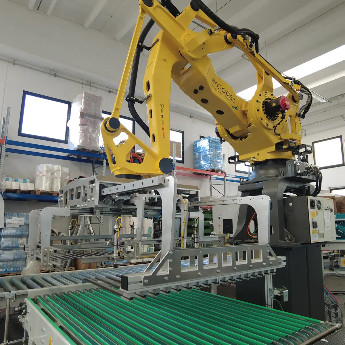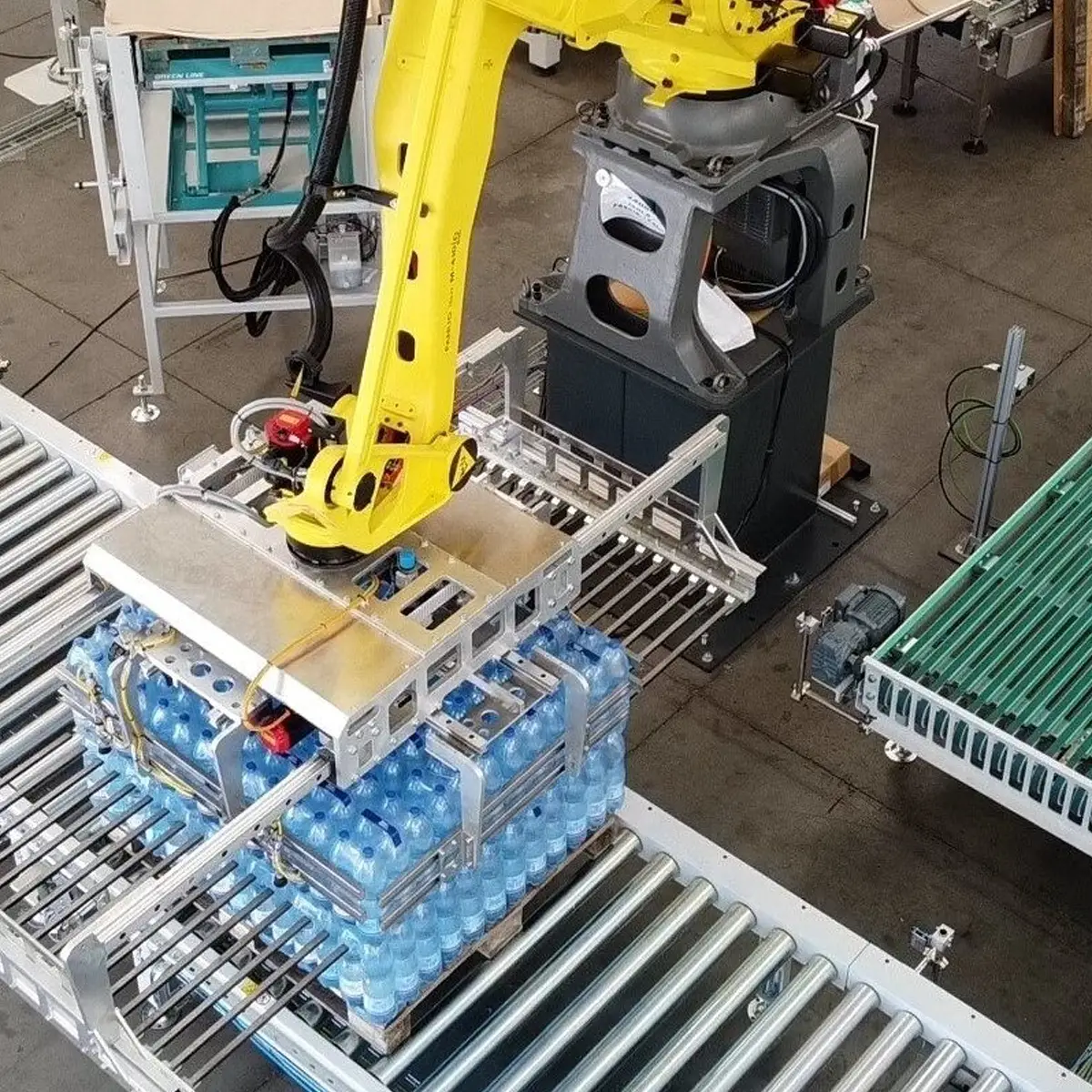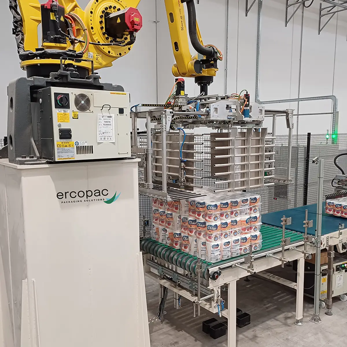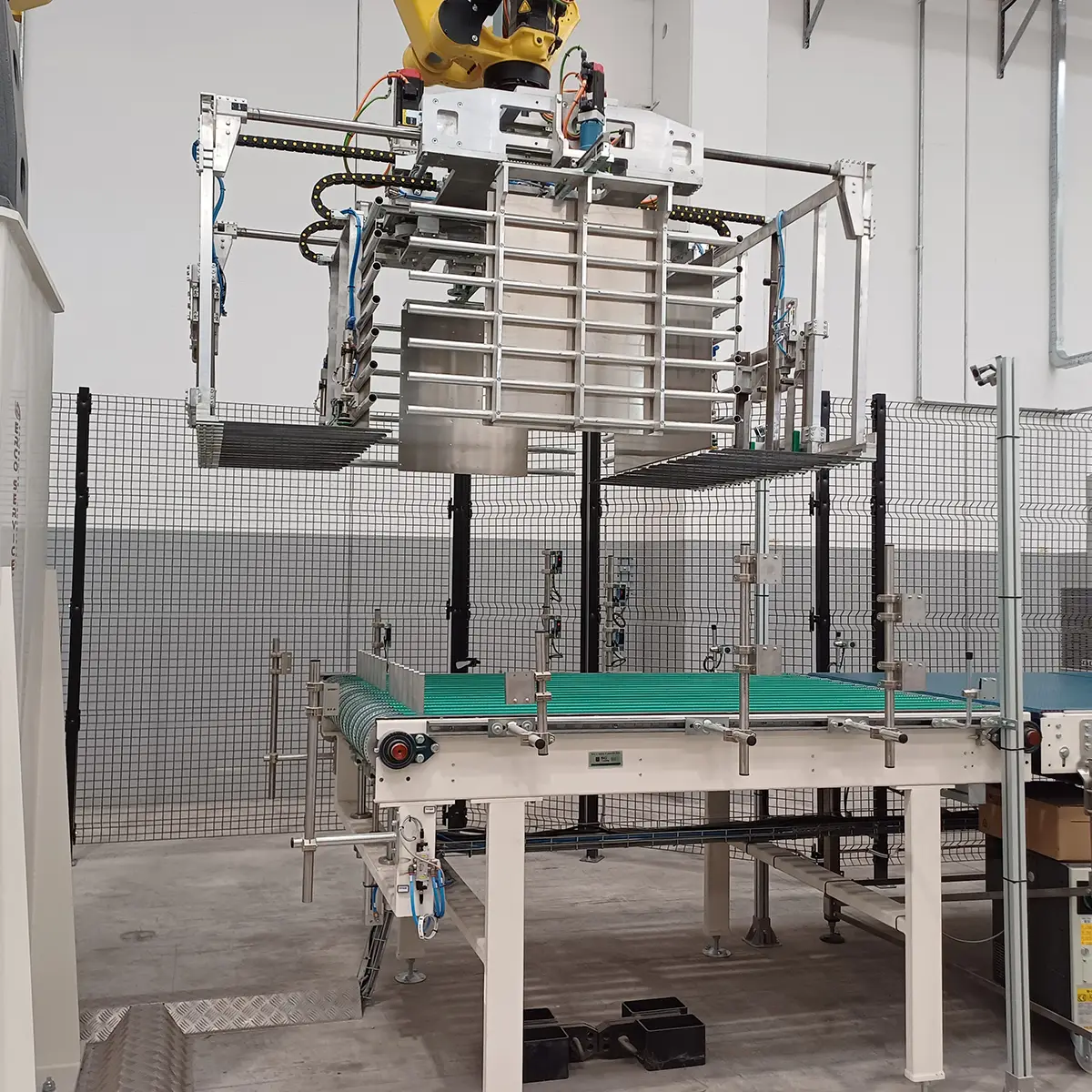 Nos systèmes robotisés de palettisation à couche sont conçus pour répondre de manière personnalisée aux besoins de nos clients, garantissant fiabilité, précision, capacité de production élevée et coûts de maintenance et d’énergie réduits grâce à l’utilisation du robot.