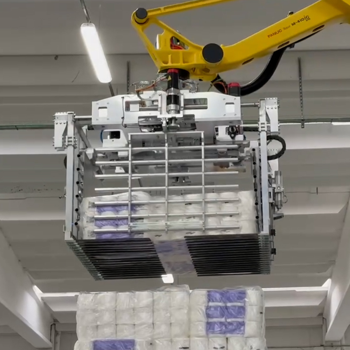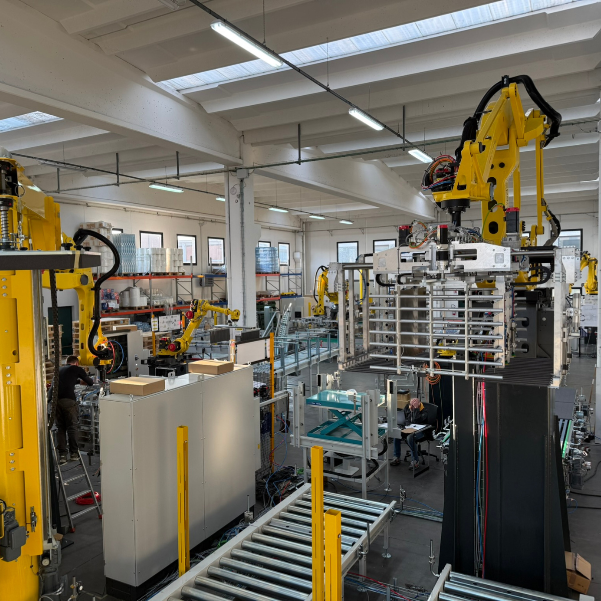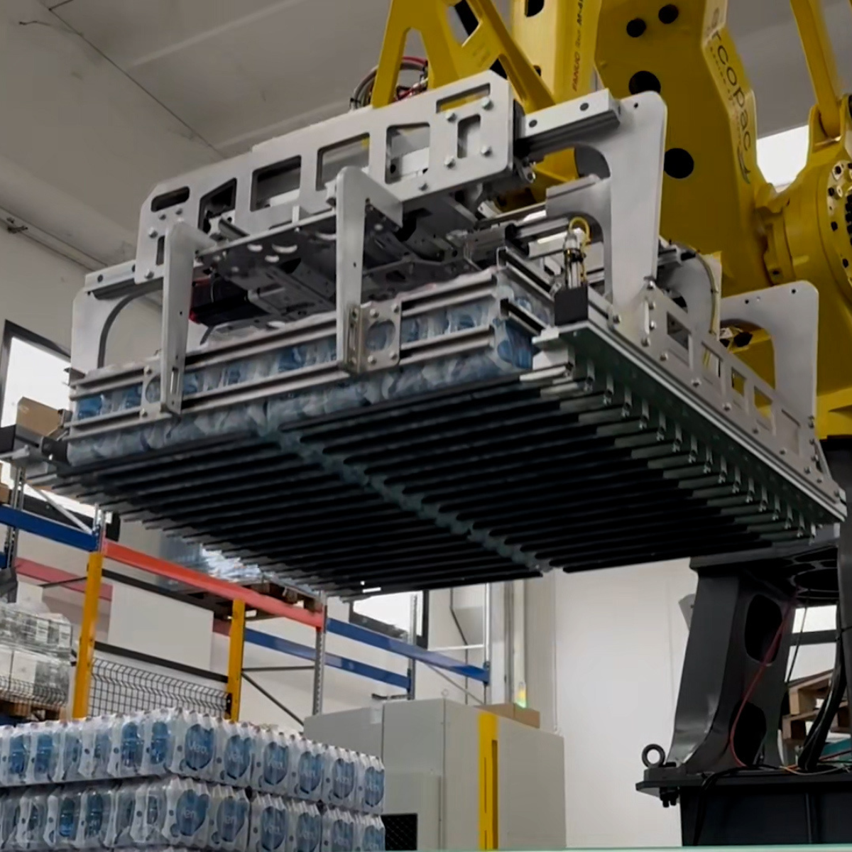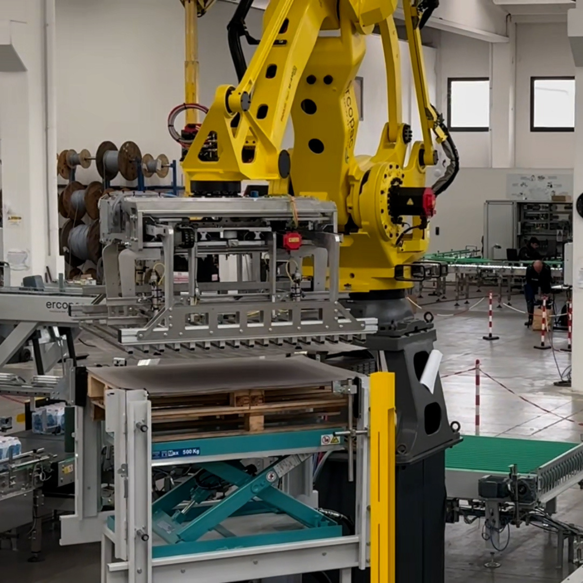 Nos systèmes robotisés de palettisation à couche sont conçus pour répondre de manière personnalisée aux besoins de nos clients, garantissant fiabilité, précision, capacité de production élevée et coûts de maintenance et d’énergie réduits grâce à l’utilisation du robot.