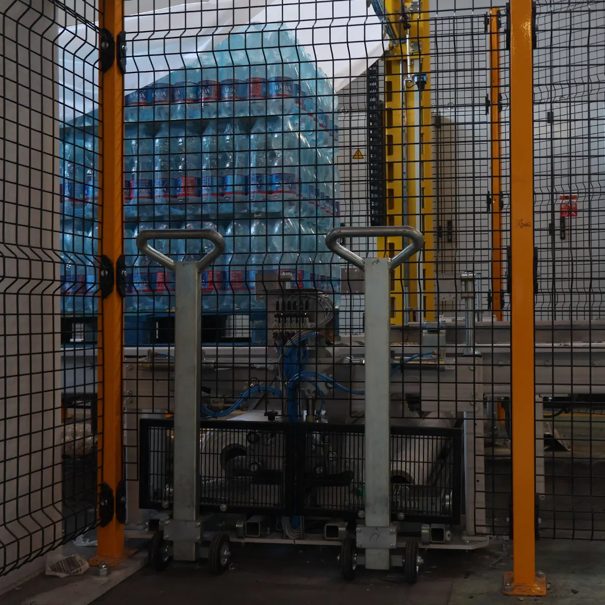 L’absence de transport par accumulation de palettes produit fini (typique des lignes à vitesse moyenne-élevée) entraîne une réduction drastique de l’espace et des coûts