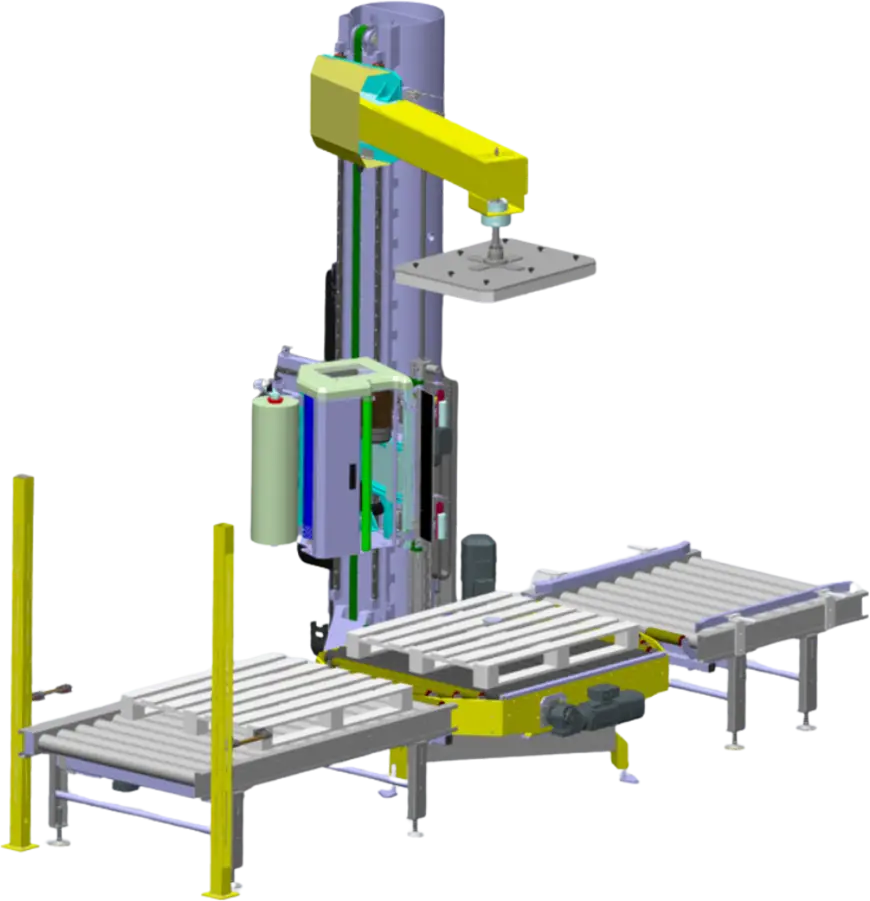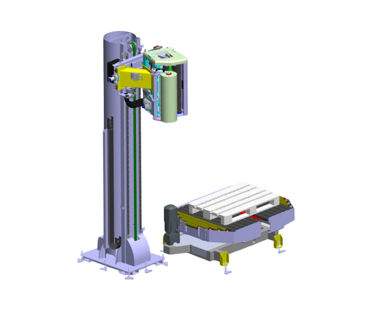 Notre gamme de banderoleuses à colonne se distingue par sa qualité de banderolage, ses hautes performances et sa compacité.