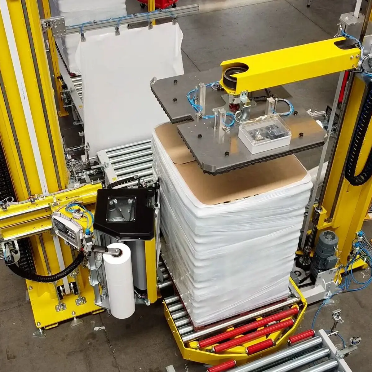 Cette caractéristique permet d’utiliser les mêmes recettes de banderolage sur les banderoleuses à colonne et robotisées, garantissant ainsi les mêmes caractéristiques techniques de stabilité et de qualité du produit.