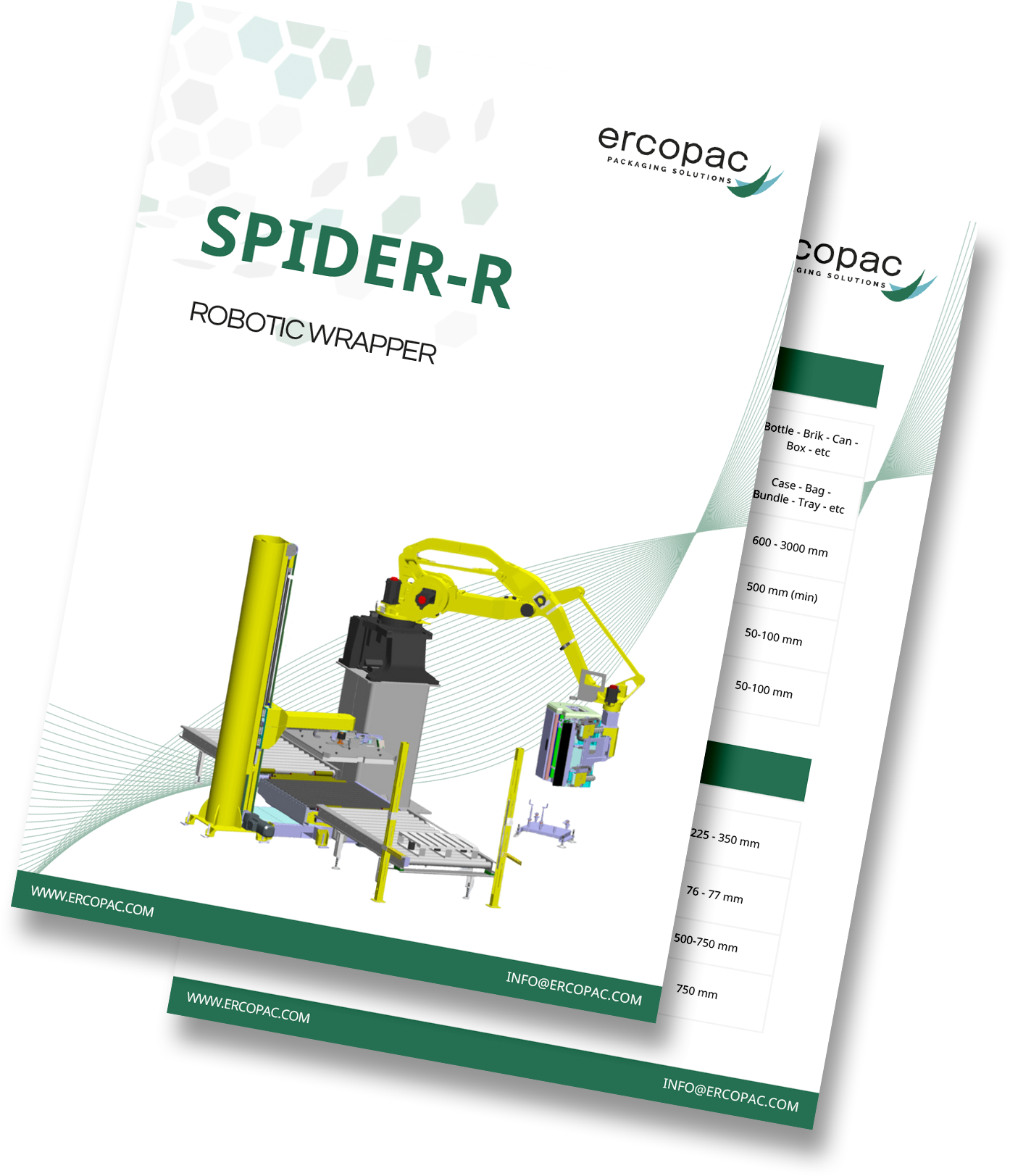La qualité d’emballage de tous nos modèles SPIDER est assurée par plusieurs brevets actifs, dont la réduction de la distance entre la tête d’emballage et le produit pendant le cycle.