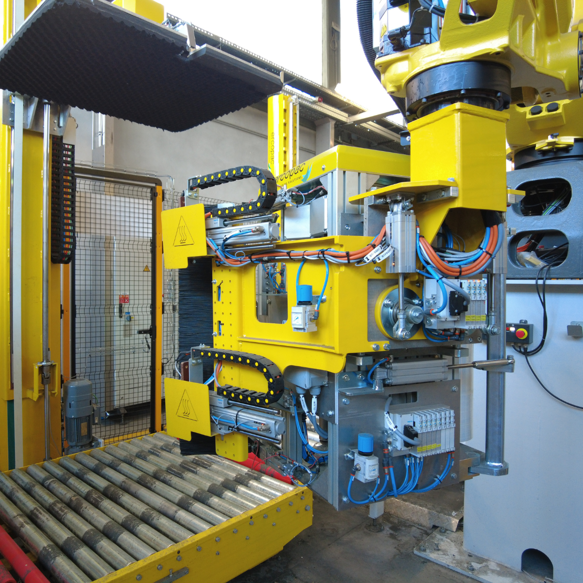 Cette caractéristique garantit une précision maximale dans les opérations de coupe et de soudure, ainsi que des diagonales rapides et un positionnement automatique du film dans les coins du pallet pour améliorer la stabilité de la charge.