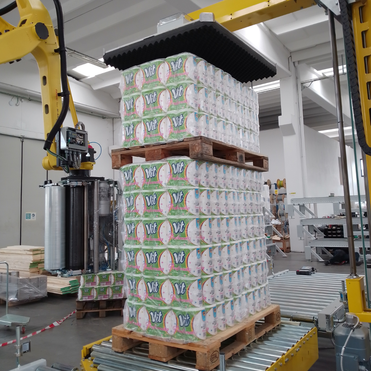 Capacité de production de 200 demi-palettes/heure.